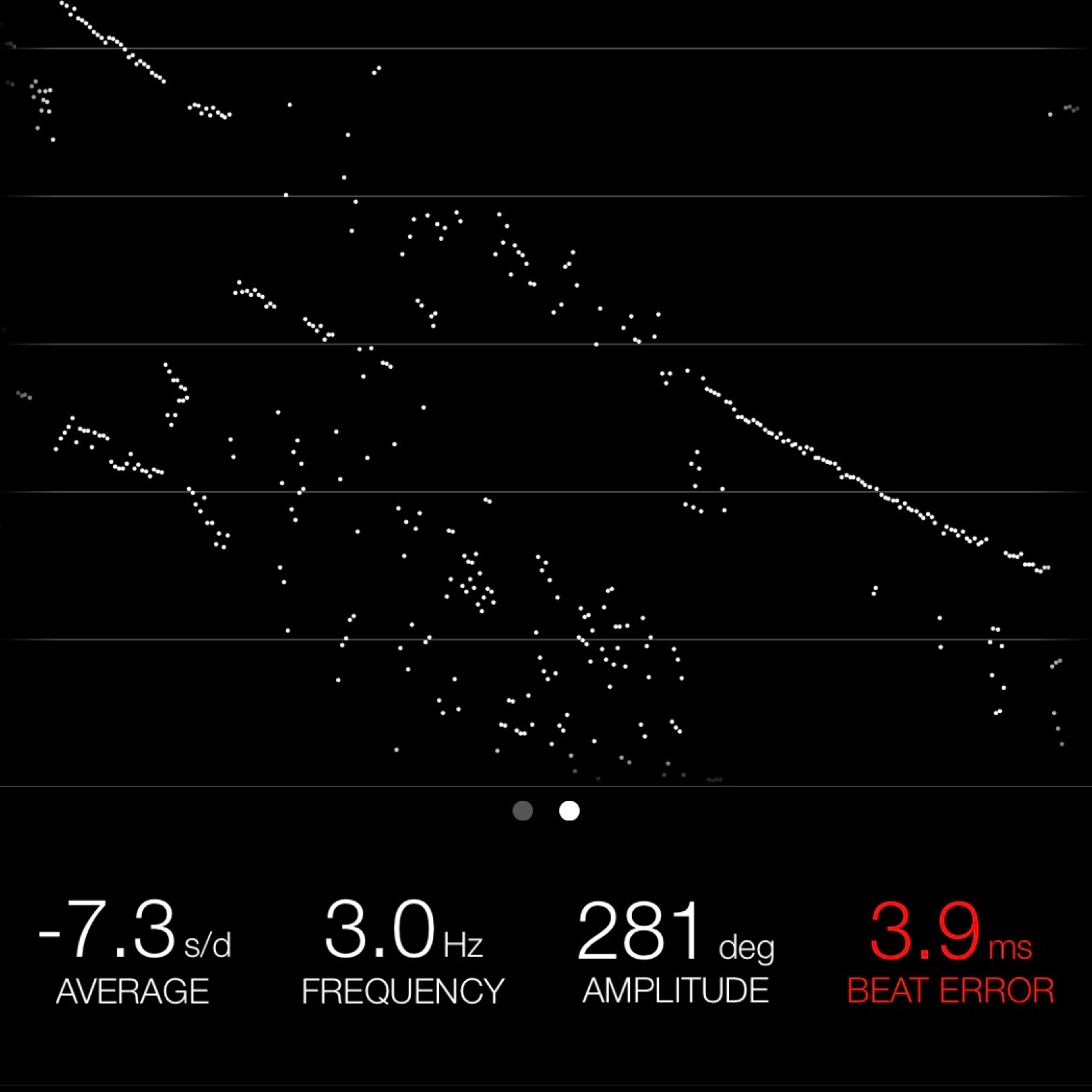 This reading was taken (crown down) with a ONEOF Accuracy Boutique Edition timing machine at time of cataloging. It is provided as a courtesy only, and shall not be construed as a warranty or guarantee of any kind. Please refer to our terms and conditions of sale for more information.