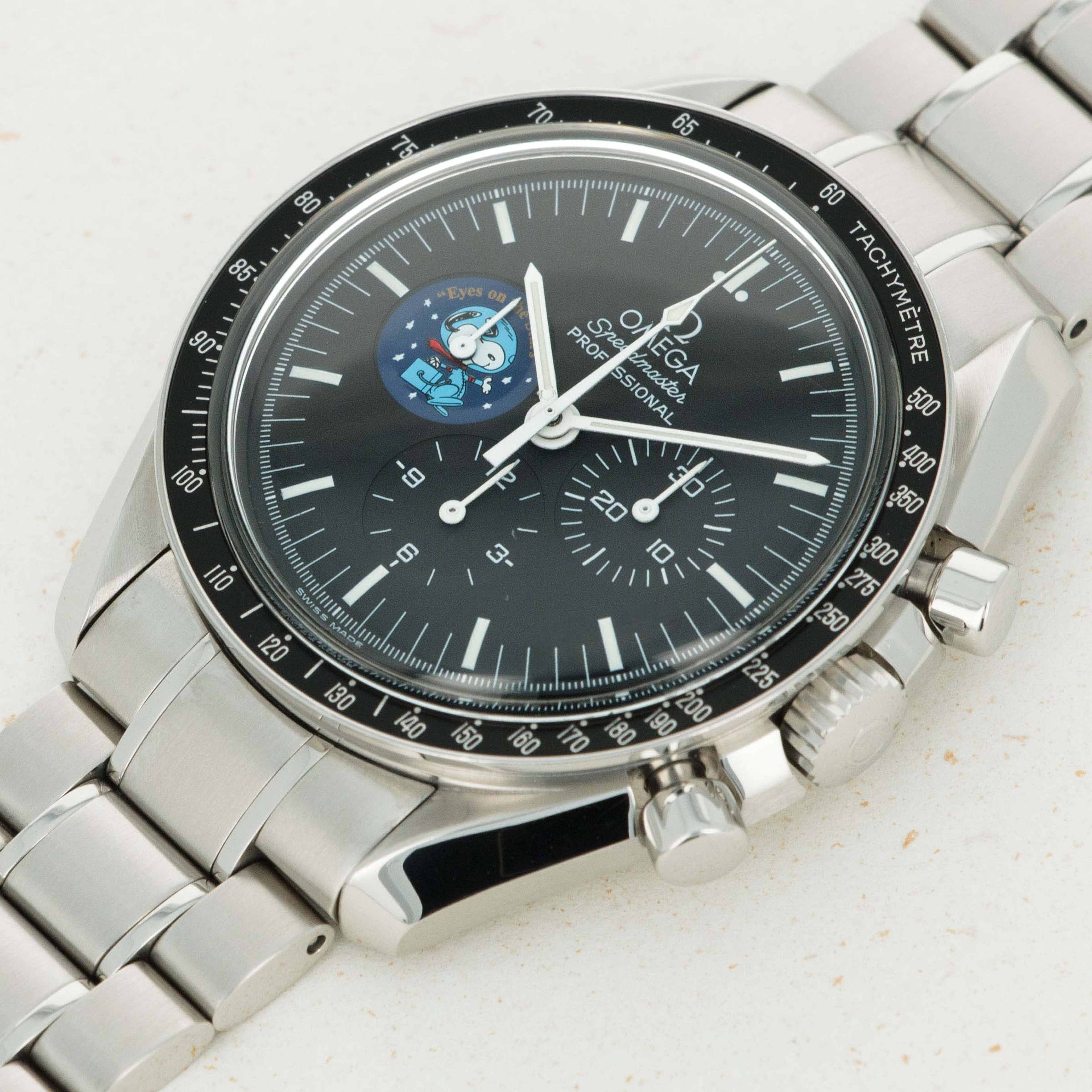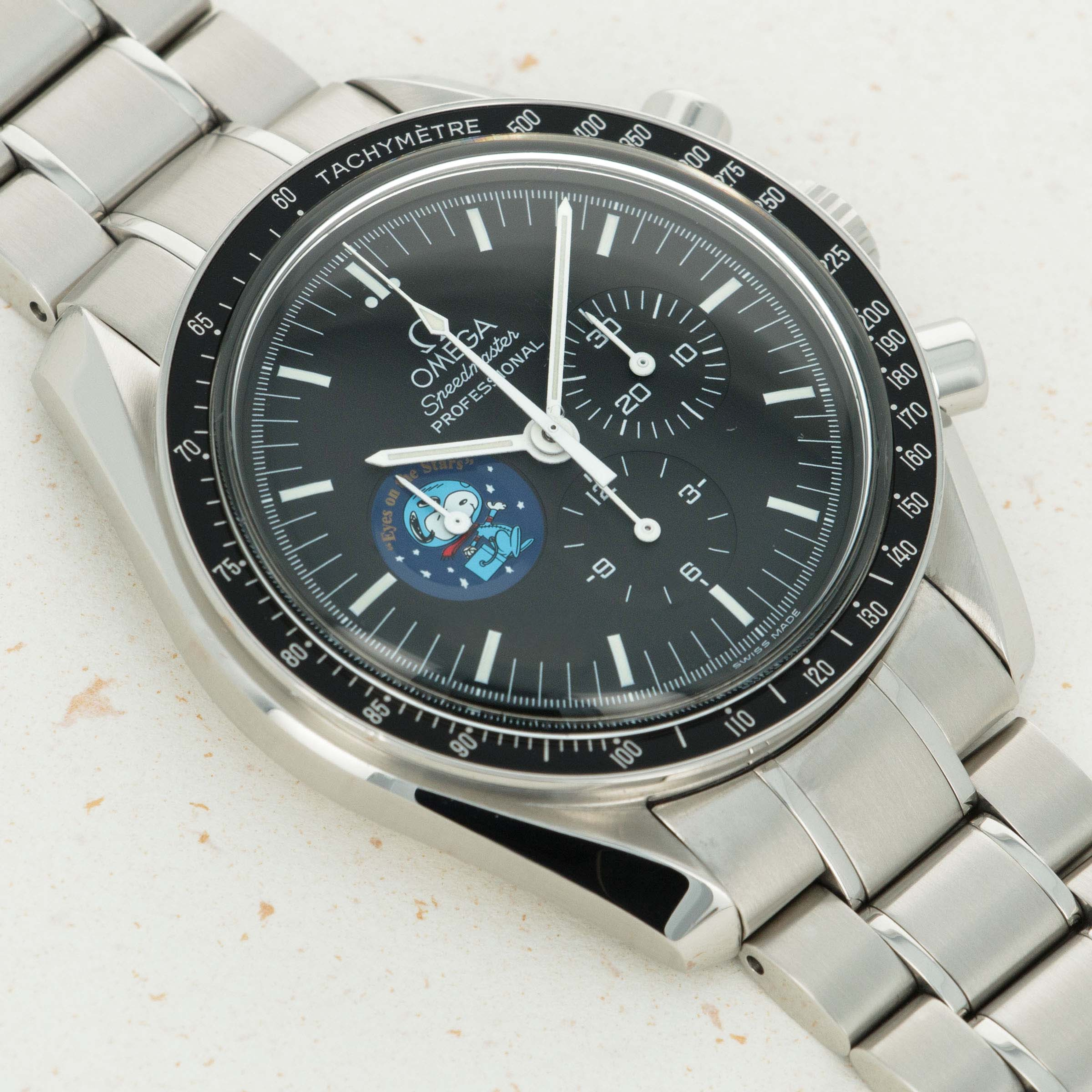 Entirely consistent with the Speedmaster Professional "Moonwatch" at the time, the Blue Snoopy ref. 3578.51.00's only distinguishing feature on its dial is the "Eyes on the Stars" patch found in its 9 o'clock subdial.